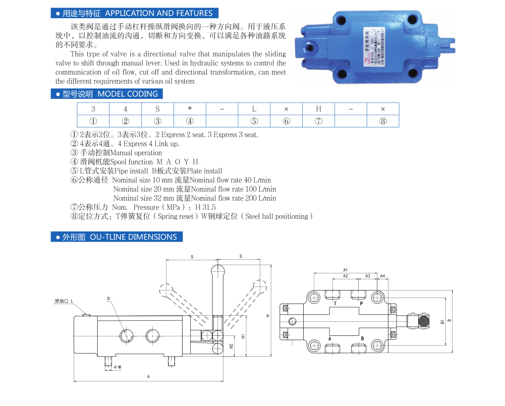 34S*-L/B-H上海型31.5MPa系列手動換向閥