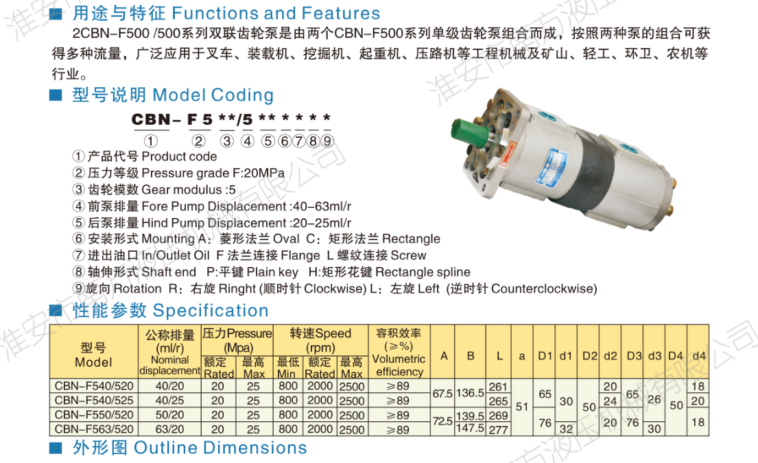 2CBN-F500/500系列雙聯(lián)齒輪泵